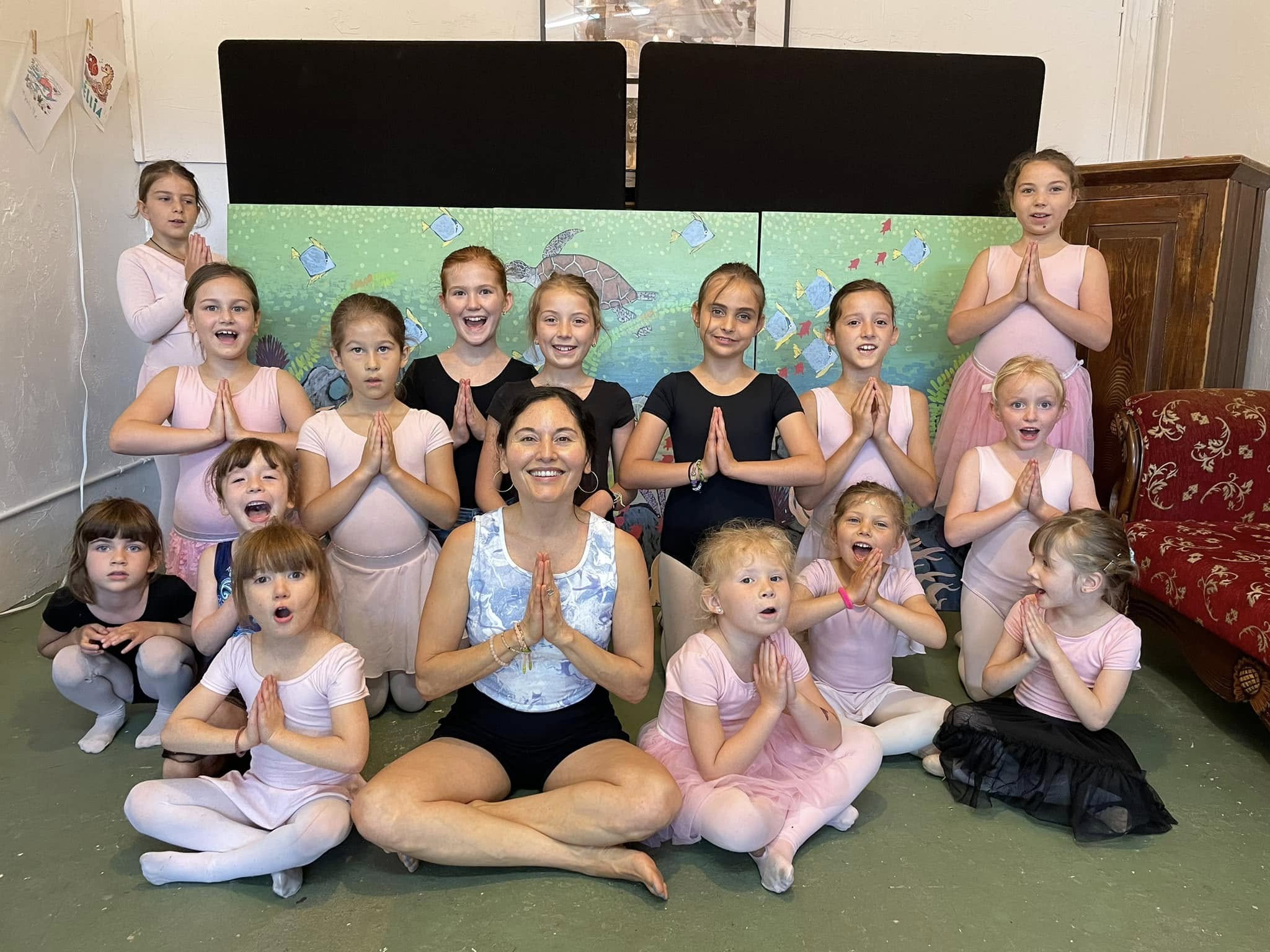 Shakti, professeure de yoga, avec les enfants du studio de ballet Annie Gauthier.